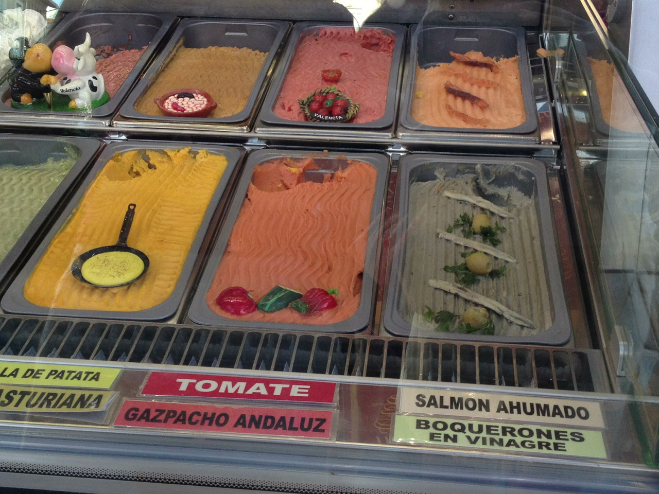 Llinares, situé sur la plaza de la Reina est un glacier figurant dans le Guiness Book pour avoir proposé pas moins de 365 goûts différents! Vous avez tous les goûts classiques possibles et imaginables (notre glace « étalon » au café était délicieuse), vous trouverez aussi des parfums plus originaux (les glaces cocktails mojito ou margarita, cardamome, pétales de rose, la fallera au potiron et chocolat) voire totalement étranges comme la glace aux anchois, à la tortilla ou au jambon!