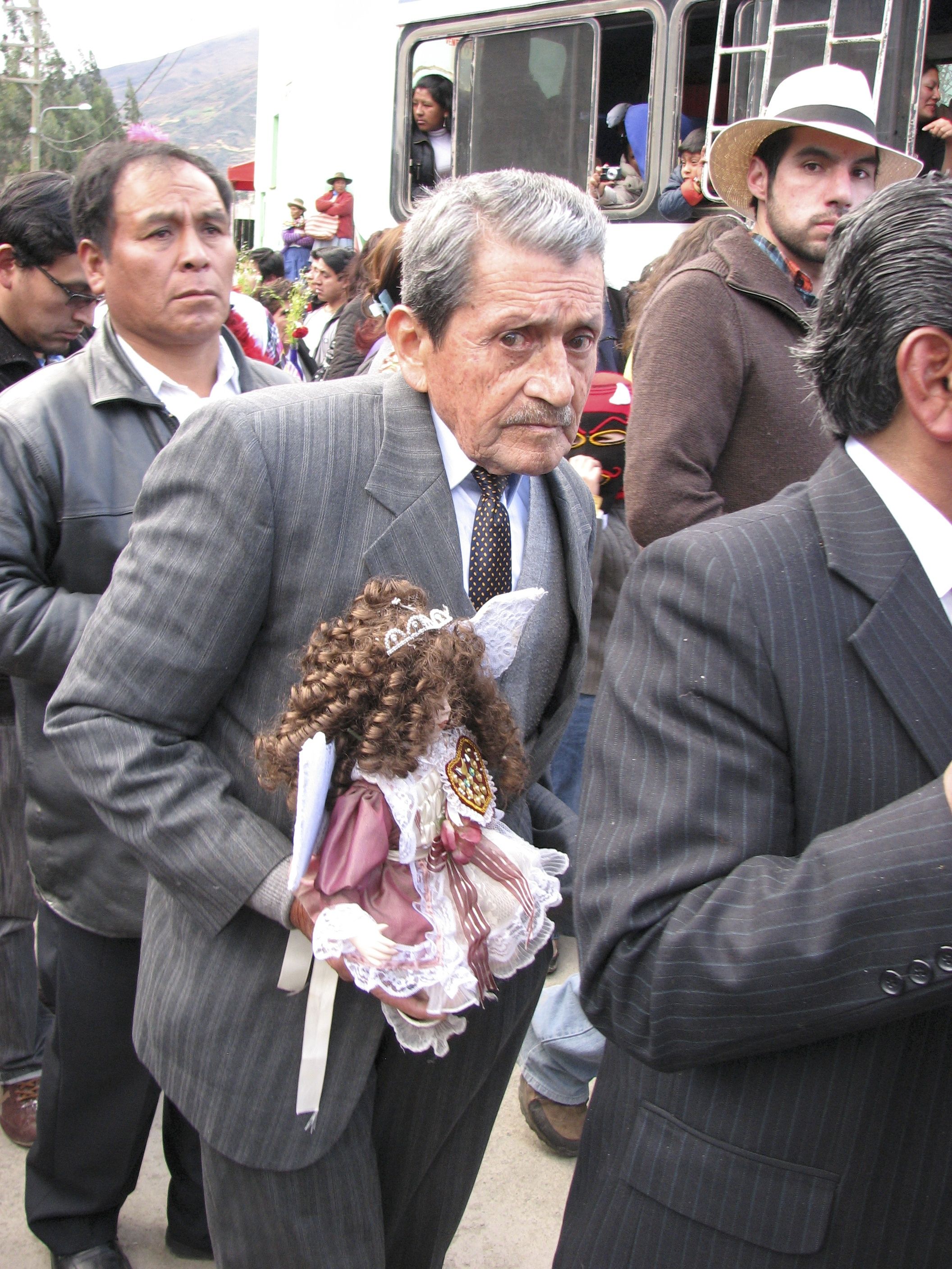 Nous avons aussi vu d’autres groupes annexes un peu étranges comme celui de ces vieux messieurs en costume défilant une poupée à la main. Autre bizarrerie : les participants au carnaval jettent à la foule… des légumes!